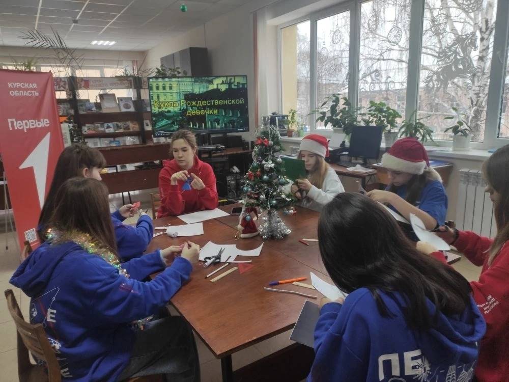 В Фатежской межпоселенческой библиотеке активисты из Движения Первых узнали об истории возникновения праздника и как его отмечали наши предки. Ребята посмотрели и обсудили поучительный художественный фильм «Кукла Рождественской девочки».