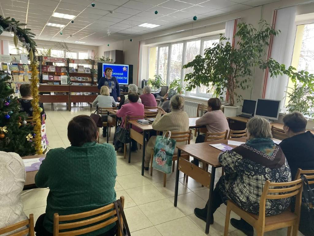В Фатежской межпоселенческой библиотеке для читателей старшего поколения в рамках Всероссийской эстафеты «Мои финансы» прошёл урок пенсионной грамотности, который провела руководитель Клиентской службы Социального фонда Апонасенко О. В.