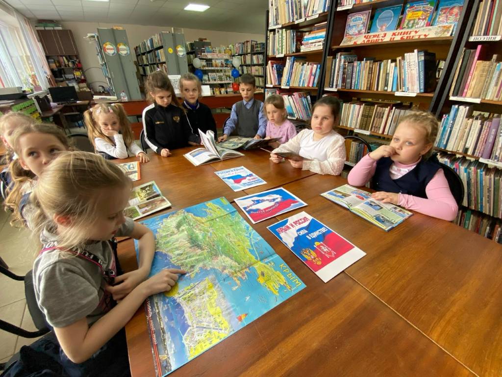 В рамках Всероссийской акции «Крымская весна - 2026» в Фатежской детской библиотеке прошел тематический час «Крым – капелька России», посвященный Дню воссоединения Крыма с Россией. Ребята узнали историю крымского полуострова от Екатерины II до наших дней, совершили виртуальную экскурсию по достопримечательностям Крыма, получили много полезной информации о городах, красивейших природных уголках, пионерском лагере «Артек». В этом помогла литература, представленная на выставке «Крым и Россия – сила в единстве». Затем ребята отгадывали пословицы о Родине и объясняли их значение, собрали флаг России и цветок единства.