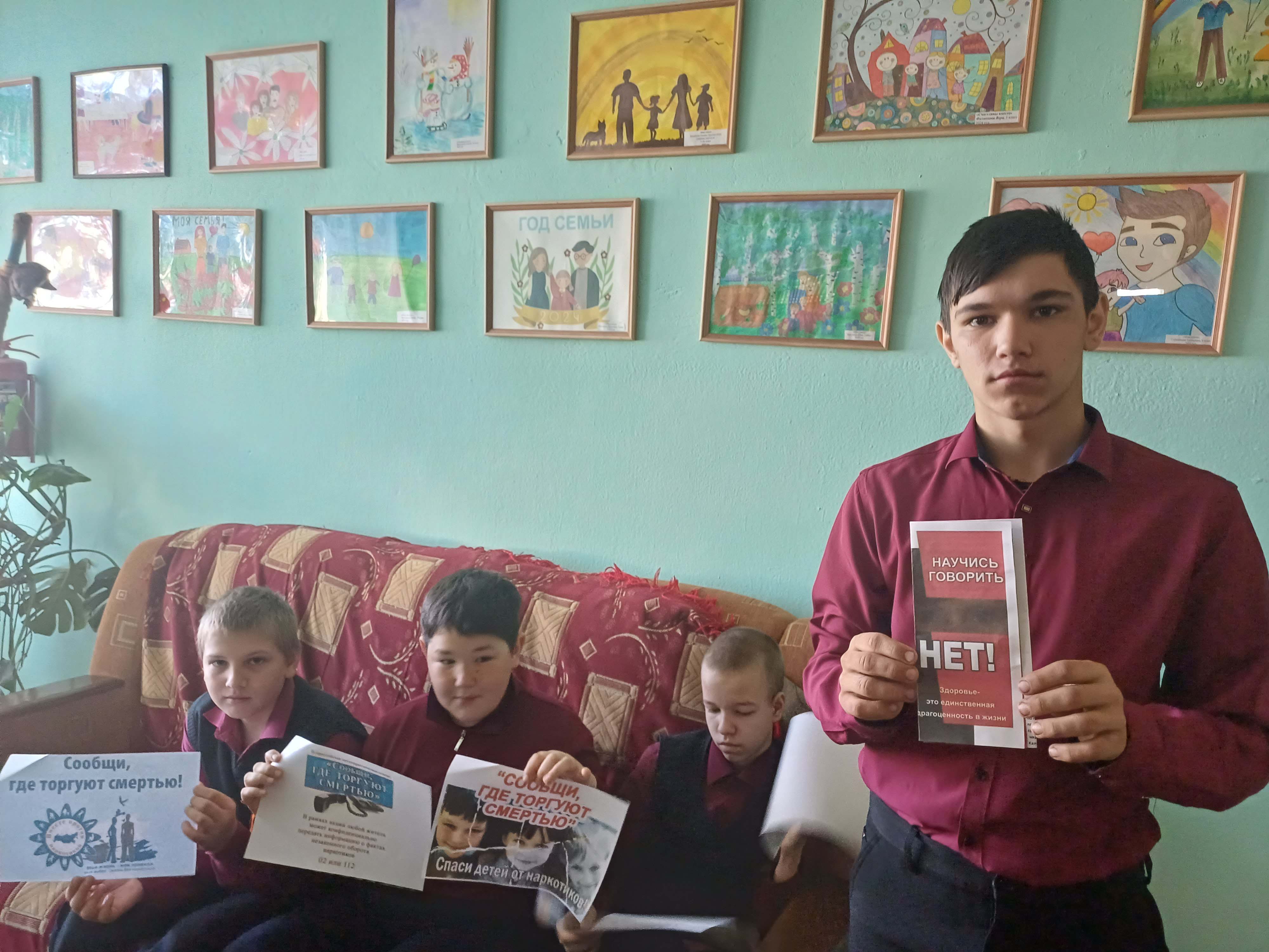 В ходе беседы ребята узнали об отрицательном воздействии и негативных последствиях злоупотребления наркотических и психотропных веществ, познакомились с основными задачами акции, получили листовки с информацией о вреде наркотиков и телефонами доверия «Как сказать «Нет», «Правила здорового образа жизни».