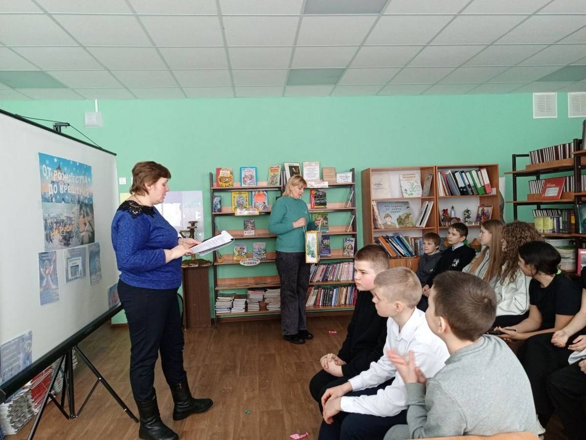 Библиотекарь Татьяна Исакова рассказала присутствующим историю праздников: Рождество Христово, Васильев вечер (Старый Новый год), Крещение Господне, а также познакомила с традициями проведения святочных гуляний, народными обрядами и обычаями. Подростки читали колядки и стихи о Рождестве, отгадали загадки, приняли участие в играх и забавах.