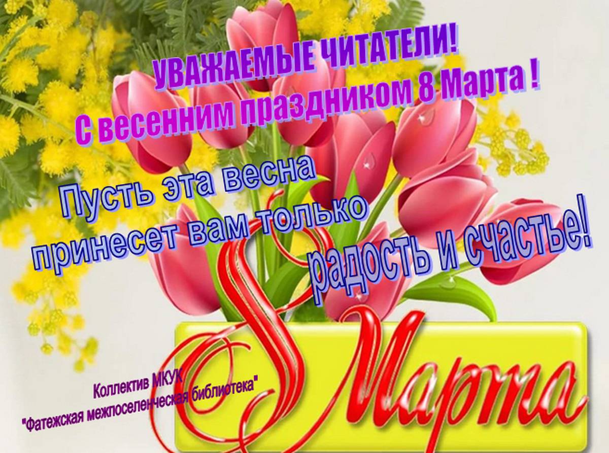 Поздравляем вас с Международным женским днем 8 Марта! Желаем всем мира, добра и счастья!