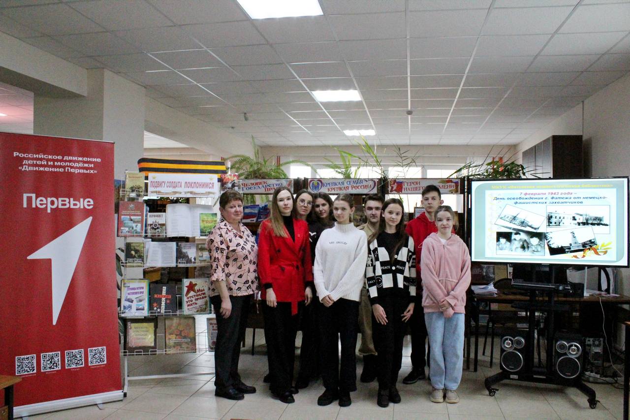 О том, как фатежане пережили тяжелое время оккупации 1941-1943гг., учащиеся узнали из книг и воспоминаний наших земляков. И каким же радостным было раннее утро 7 февраля 1943 года, когда на улицах города появились воины Красной армии!