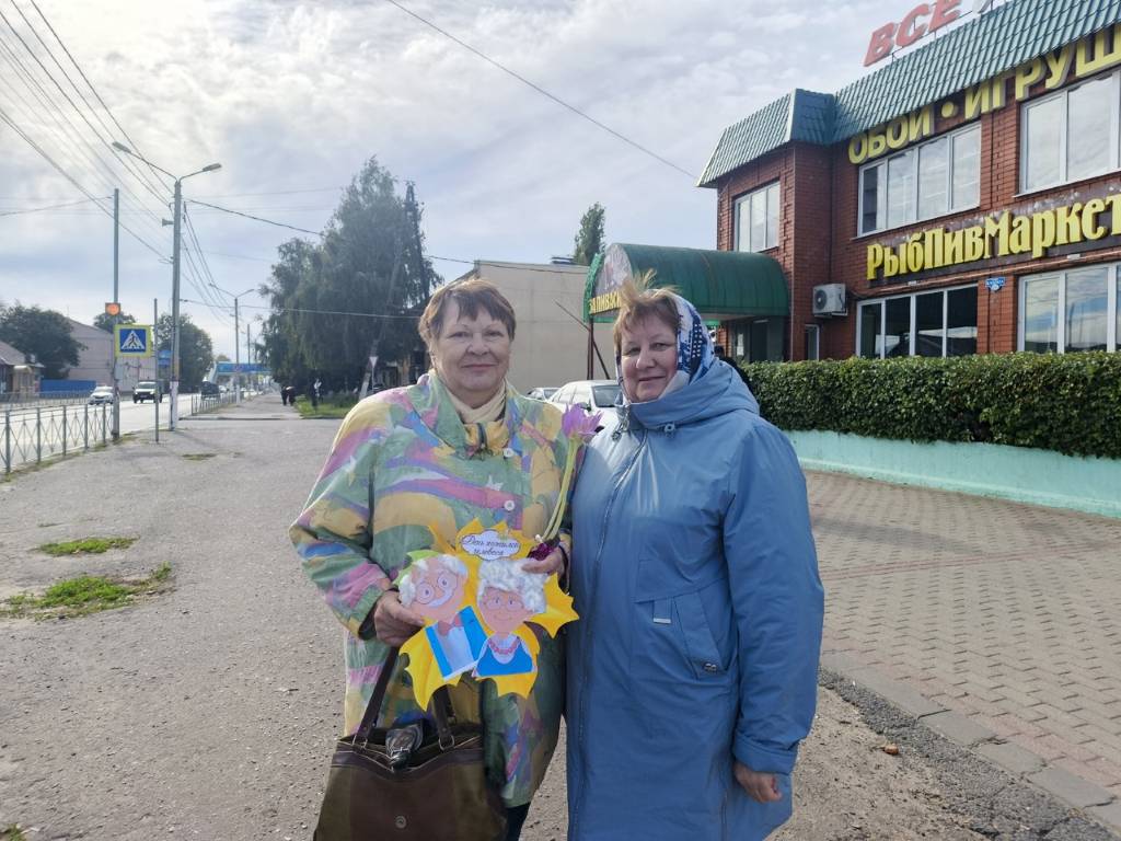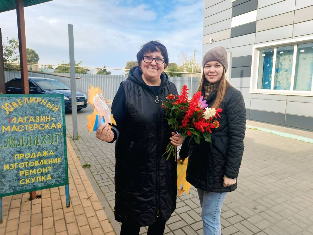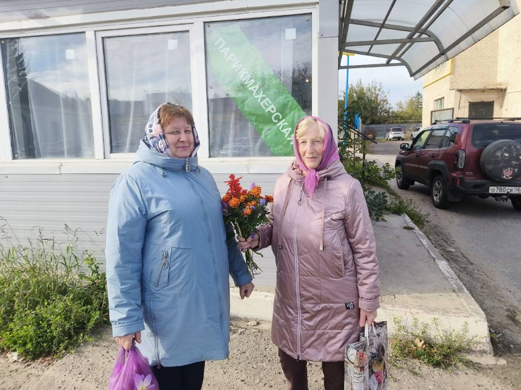Жителям были вручены цветы и необычные открытки с теплыми пожеланиями здоровья, и долгих лет жизни.