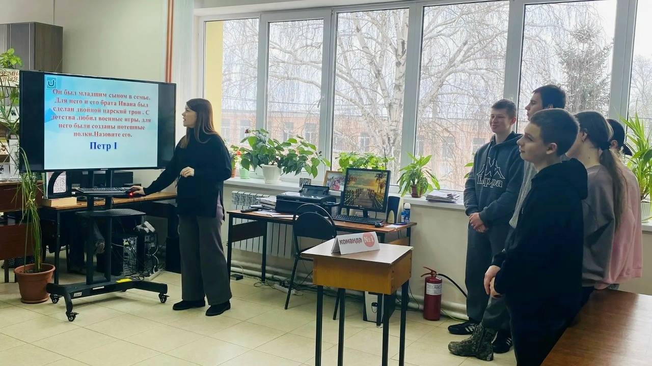 Две команды «Историки» и «Эрудиты» соревновались за звание лучшего знатока истории. Вопросы были составлены по категориям: «Время Петра Великого», «Исторические факты», «Даты», «События» и др. За каждый правильный ответ начислялись очки. В помощь игрокам была оформлена книжная выставка «Исторические личности».