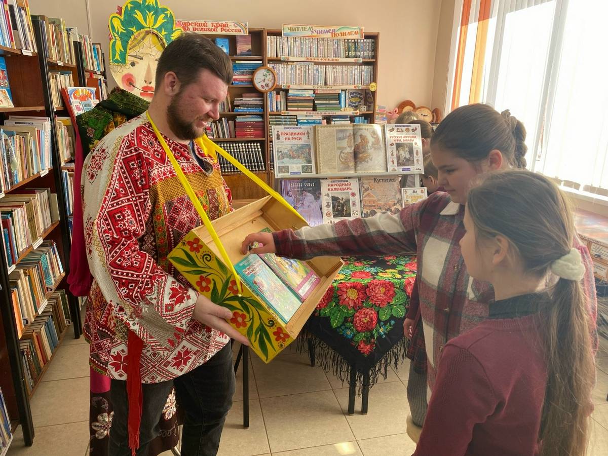 Не найти такого человека в России, который бы не любил Масленицу! Масленицу праздновали еще наши прадеды, так как этот задорный и веселый праздник уходит своими корнями в глубину веков. Приобщить детей к народным традициям и развить интерес к истории помог развлекательный праздник «Масленица идет, блин да мед несет», который работники библиотеки провели в рамках проекта «Культура для школьников» и клуба «Сударушка» для обучающихся ФСОШ №2 .