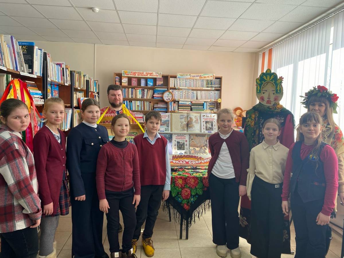 Развлекательный калейдоскоп «Масленица – широкая боярыня», посвященный празднику проводов зимы и встречи весны, провели работники Фатежской детской библиотеки для обучающихся 3А класса СОШ №1.