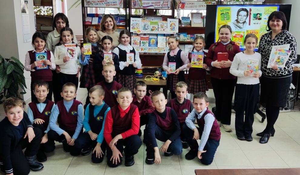 На час детской поэзии «Кораблик под парусом детства» к 120- летию со дня рождения известной детской поэтессы А. Л. Барто мы пригласили второклассников ФСОШ №2. Познакомить детей с жизнью и творчеством А. Барто помогла выставка-экспозиция «Читаем вместе» и видеопрезентация «Чьи стихи мы знаем с детства». Весело прошла игра «Продолжи строки». Особенно понравился мальчикам и девчонкам конкурс «Инсценировка стихотворений». В шуточной форме ребята изобразили героев стихотворений «Модница», «Любитель-рыболов», «Митяй-лентяй», «Веревочка». Дети познакомились со стихотворениями о природе, которые собраны в разделе «Из пестрых страниц», посмотрели отрывок мультфильма «Снегирь», собрали пазлы, узнав героев произведений А. Барто.