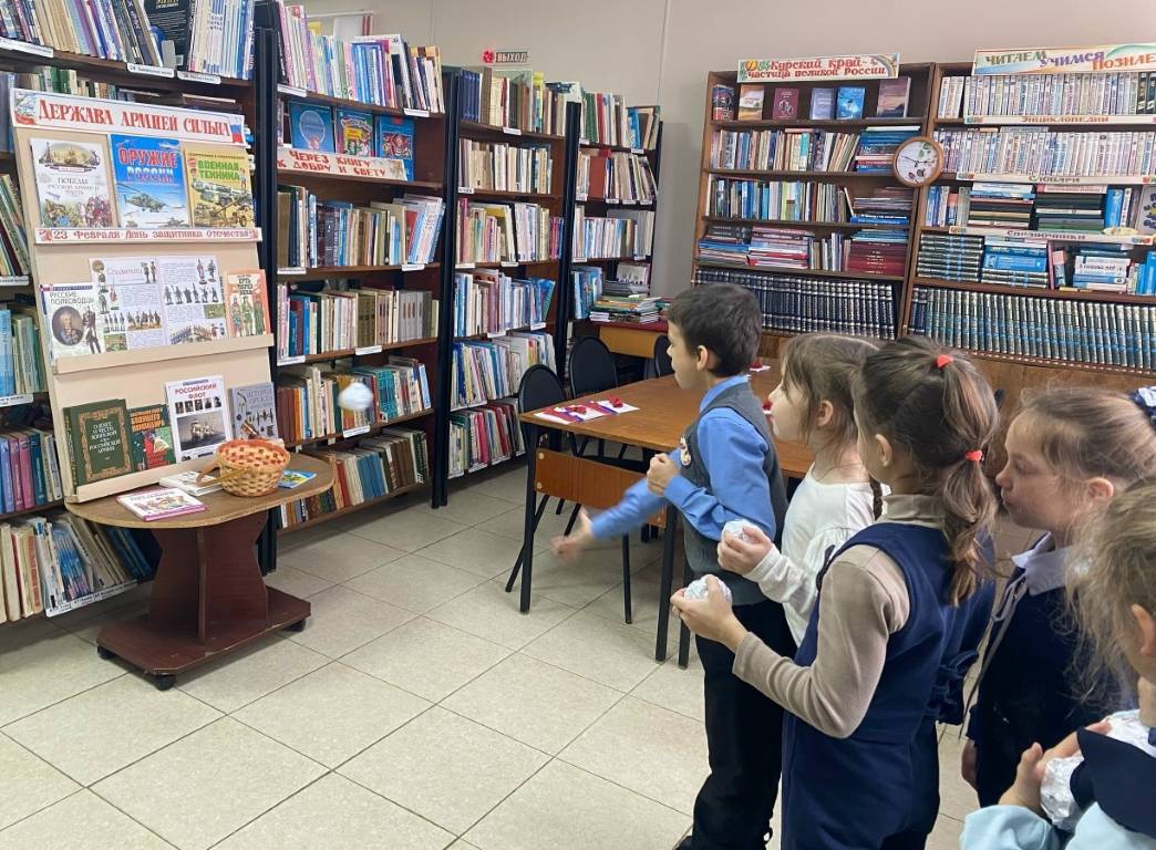 Ко Дню защитника Отечества в Фатежской детской библиотеке прошла конкурсно-игровая программа «Посвящение в рыцари». Девочки на время превратились в принцесс, а мальчики в принцев. Чтобы «завоевать сердца» принцесс-одноклассниц, они должны были пройти испытания. Детей ждали подвижные игры «Всадники», «Меткий стрелок», «Бег по кочкам». Мероприятие прошло весело и подарило всем хорошее настроение. Особенно понравился школьникам мастер-класс «Открытка для папы». Они с большим усердием и любовью создавали красивые открытки. В ходе занятия ребята познакомились с историей возникновения праздника, его важностью и значимостью.