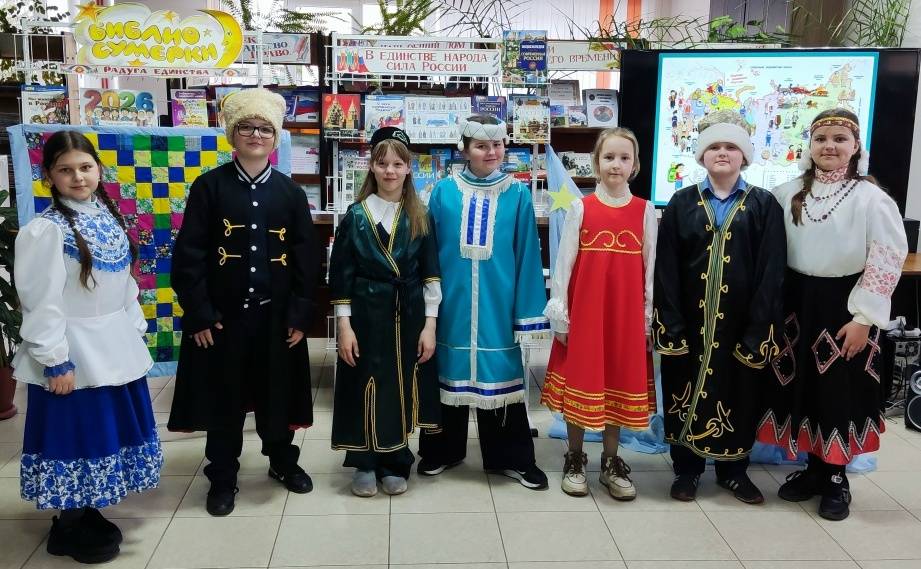 Традиционная Всероссийская акция «Библиосумерки-2026» прошла в Фатежской детской библиотеке для обучающихся СОШ№1 под девизом «Единство народов – сила России!». В этом году Акция отмечает свой 15-летний юбилей!