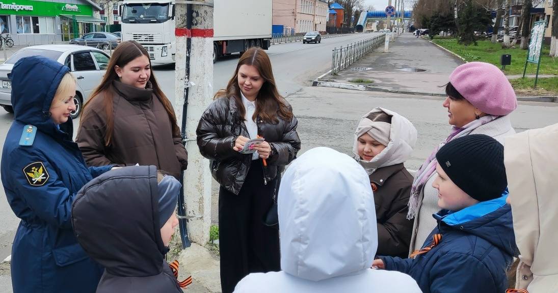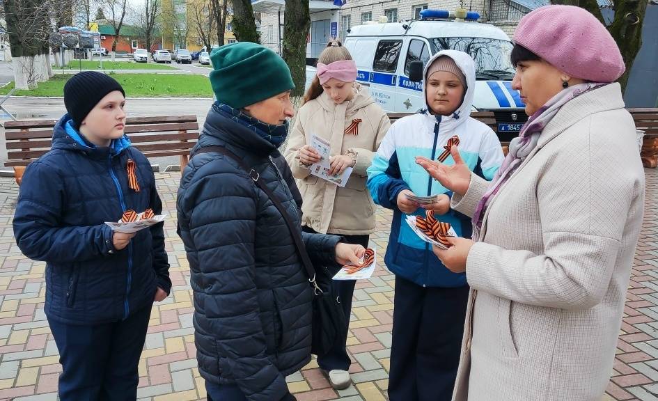 Дети раздали жителям нашего города ленточки и буклеты, в которых рассказывается об истории георгиевской ленты, как правильно носить и где носить не допускается, о цветах георгиевской ленточки, которые имеют глубокое символическое значение. Это цвета пороха и огня, Победы, мужества, героизма и доблести наших защитников, символ памяти и уважения ветеранов.