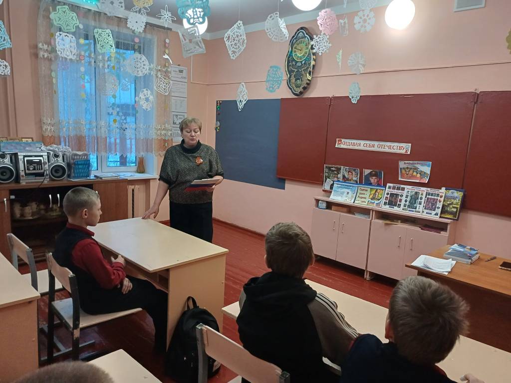 10 декабря Большеанненковская сельская библиотека провела с учащимися 7 класса Большеанненковской школы урок патриотизма «Отчизны славные сыны».