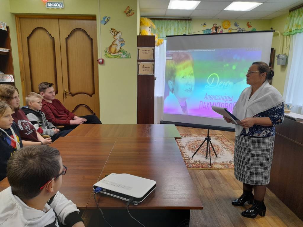 В библиотеке царила тёплая и дружественная атмосфера. Дети с удовольствием слушали и исполняли песни А. Н. Пахмутовой.