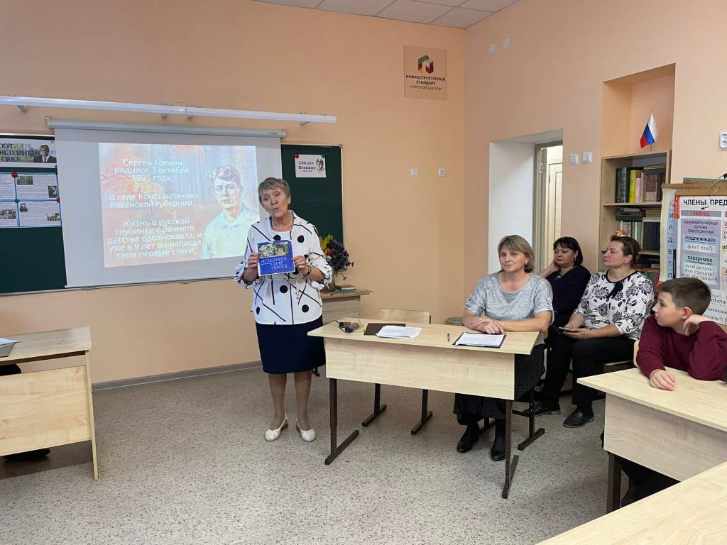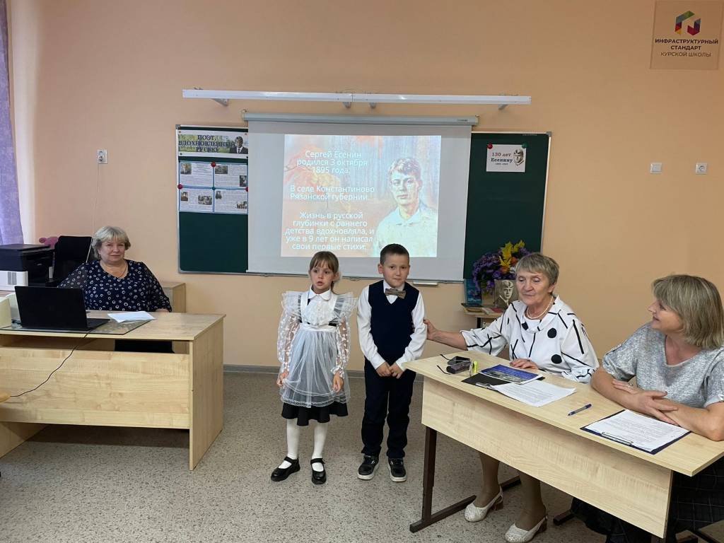 Ведущие мероприятия рассказали о жизни и творчестве Сергея Александровича, подчеркнув особенную привлекательность его стихов, которые трогают сердца разных поколений. Мультимедийная презентация познакомила с биографией поэта. Участники мероприятия окунулись в удивительный мир есенинской поэзии, читали известные стихи: «Береза», «Поет зима- аукает…», «Гой ты, Русь, моя родная…» и другие. В ходе встречи ученики познакомились с лирическими и музыкальными произведениями Есенина, в которых переплелась любовь к Родине, природе, женщине и самой поэзии. Многие стихи Сергея Есенина положены на музыку, и обрели новую жизнь в качестве любимых всеми песен и романсов. Во время встречи прозвучали известные песни и романсы: «Отговорила роща золотая…», «Не жалею, не зову, не плачу», «Мне осталась одна забава». Поэтический настрой продолжили ученики начальных классов чтением стихотворений, посвящённые Родине, природе.
