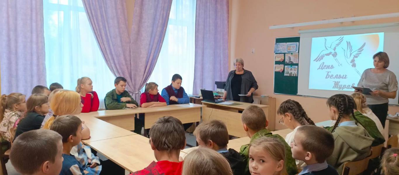 В ходе мероприятия школьники прослушали песню на слова Р. Гамзатова «Журавли» в исполнении Марка Бернеса, прочитали стихотворения о нашей Родине, о ее защитниках и журавлях, олицетворяющих бессмертные души воинов и посмотрели презентацию по странам и городам, где установлены памятники «Белым журавлям».