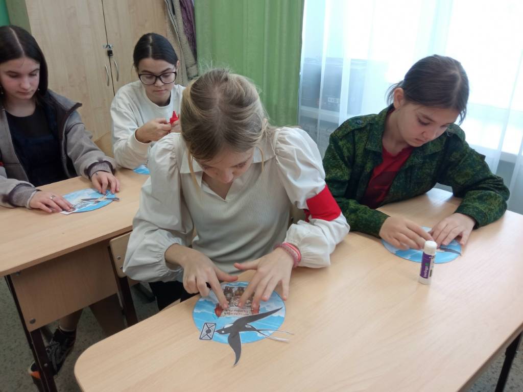 Совместно с советником директора по воспитанию МКОУ «Солдатская ООШ», Пряхиной М. А. для школьников 5 - 9 классов был организован и проведен мастер-класс «Блокадная ласточка - символ надежды».