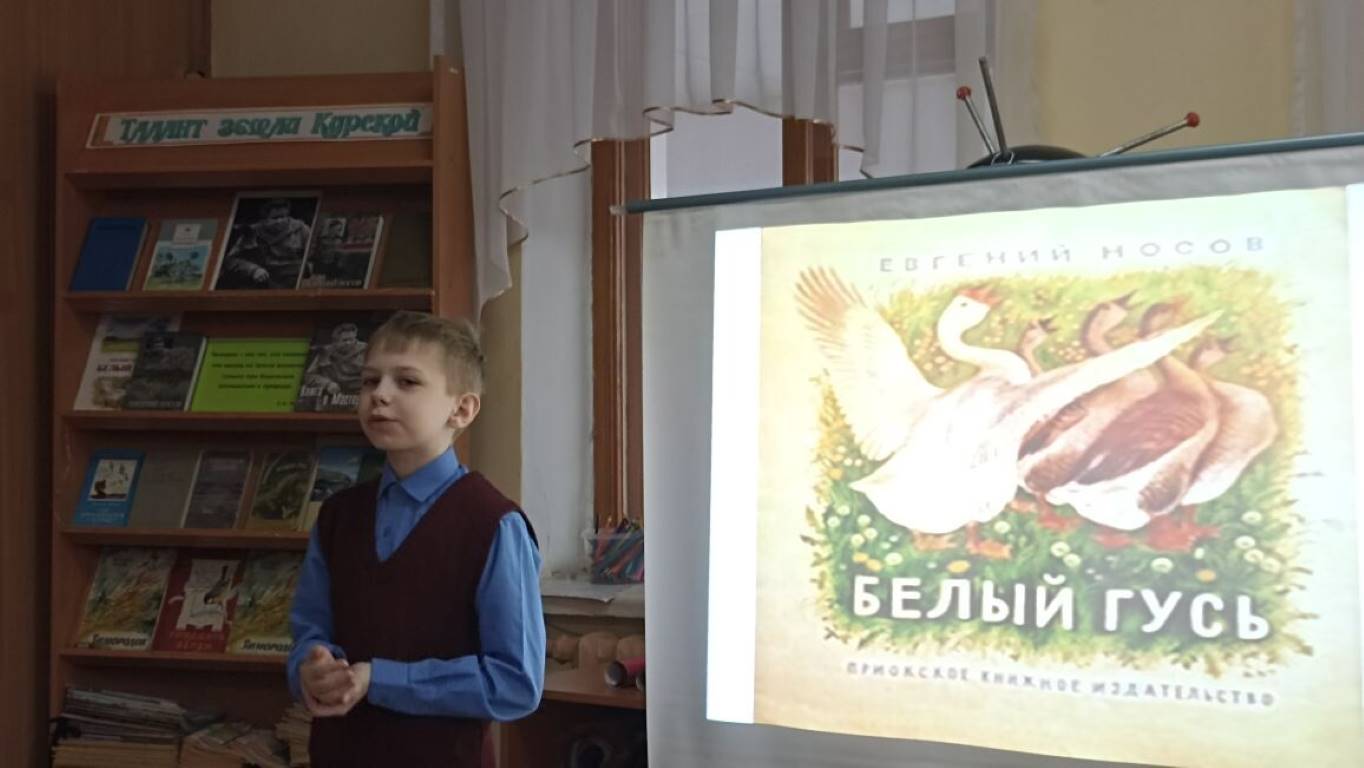 В ходе мероприятия ребята узнали о жизни, творчестве и увлечениях знаменитого земляка. Юные читатели поделились своими впечатлениями и чувствами о прочитанных рассказах «Белый гусь» и «Тридцать зерен», поразмышляли над тем, что значит быть Человеком, по мнению Е. Носова.