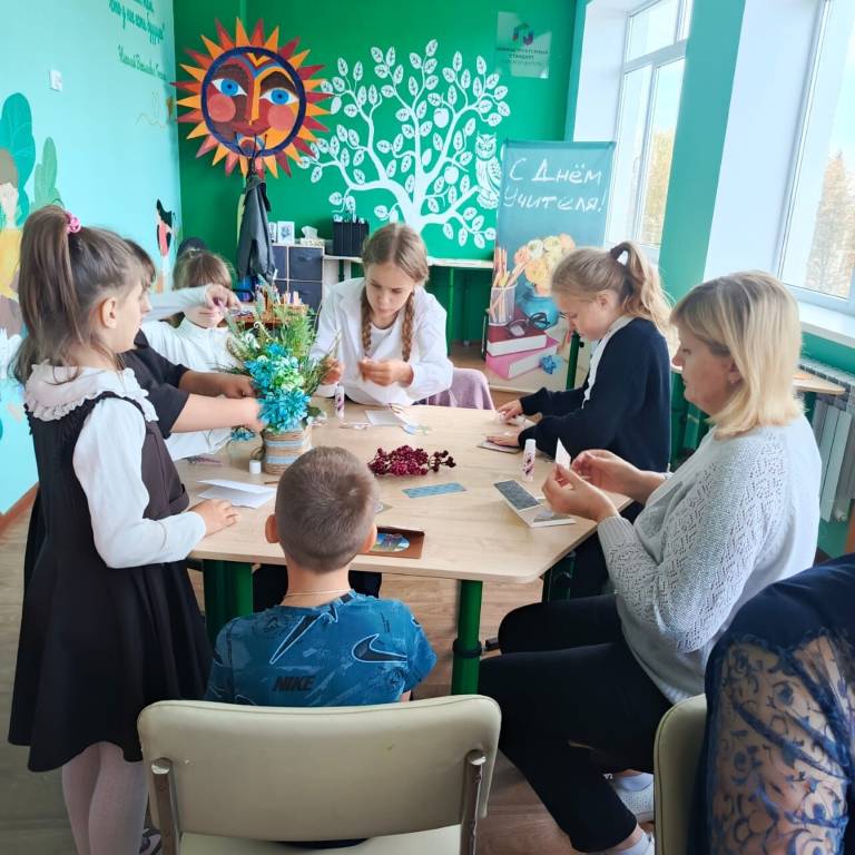 В Международный день пожилого человека работники сельской библиотеки совместно с советником директора по воспитанию Светланой Крючкиной и старшей вожатой Анной Алексеевой провели мастер-класс «Подарок дорогому человеку». Мероприятие было проведено с целью творческого развития детей и воспитания уважительного отношения к пожилым людям.