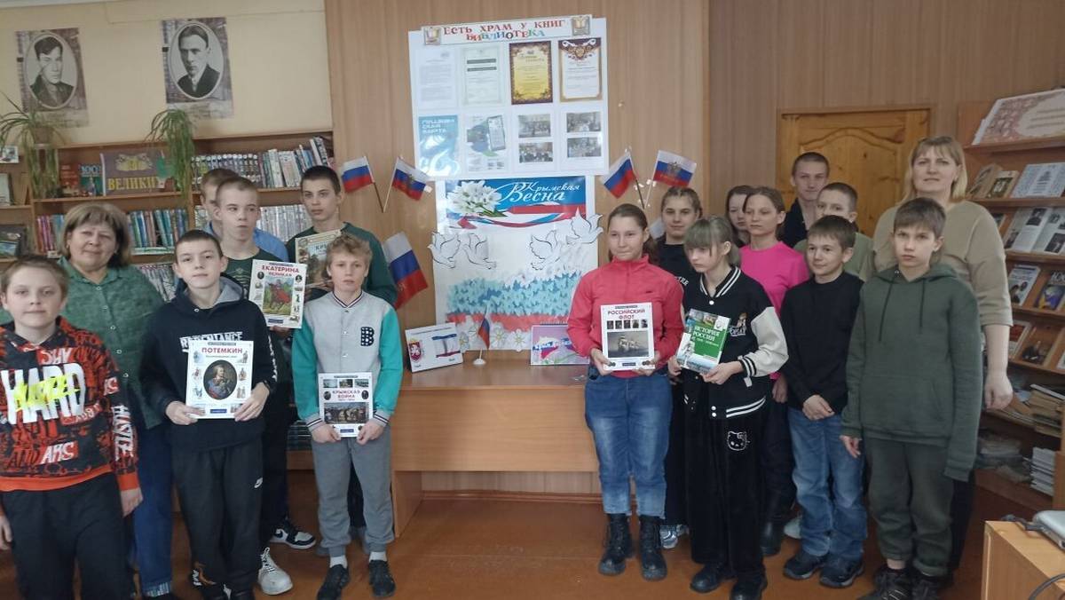 Библиотекари Верхнелюбажской сельской библиотеки провели серию мероприятий, посвящённых Дню воссоединения Крыма с Россией, который отмечается ежегодно 18 марта. Этот праздник символизирует важное историческое событие, когда жители Крыма и Севастополя выразили свою волю присоединиться к России путём референдума в 2014 году. Мероприятия включали: информационный час «Частичка России – прекрасный Крым»: знакомство с историей и культурой полуострова, познавательный час «Крым один - народов много»: обсуждение культурного многообразия Крыма; видео-круиз «Путешествие по Крыму»: просмотр фильмов и видеороликов о достопримечательностях Крыма; фотосессия #КрымВеснаРоссия; час творчества «Россия и Крым - мы вместе»: творческие занятия, направленные на укрепление единства и дружбы; беседы у книжной выставки «Крымская Весна»: обсуждение книг и материалов, связанных с событием.